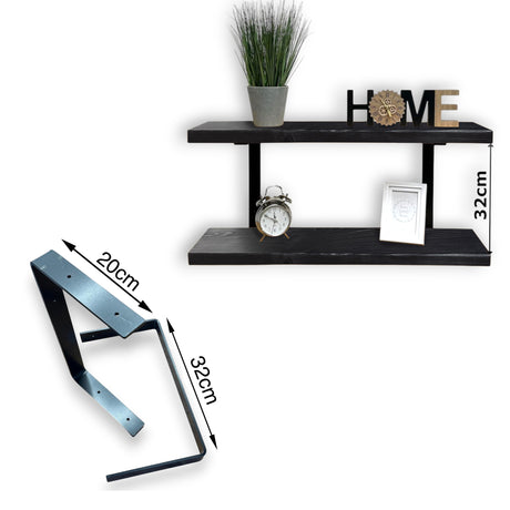 All shelves are supplied with a pair of two heavy duty U/C DOUBLE style brackets along with all fixings. Brackets are unattached, so you can locate them wherever you wish. They are made to fit our shelves perfectly.