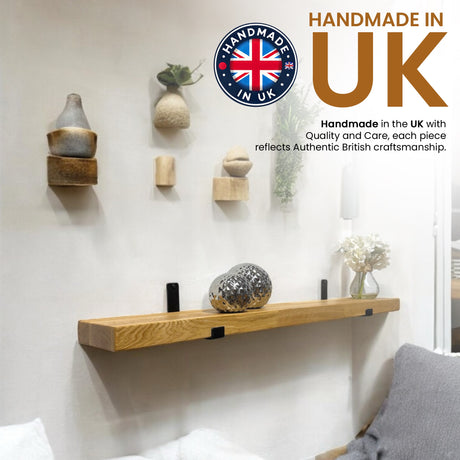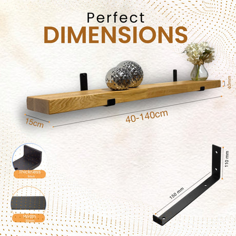 Oak Wooden Shelf Wall-Mounted Floating Rustic, 40mm with UP Brackets