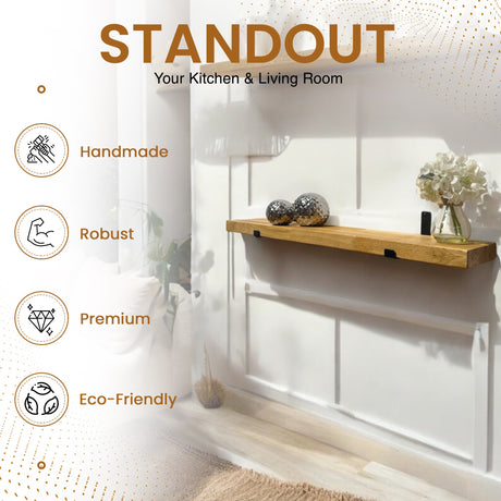 Oak Wooden Shelf Wall-Mounted Floating Rustic, 22mm with UP Brackets