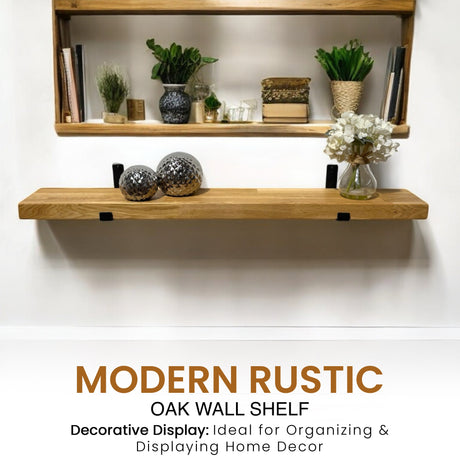 Oak Wooden Shelf Wall-Mounted Floating Rustic, 40mm with Down Brackets