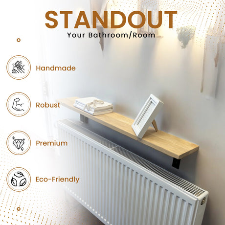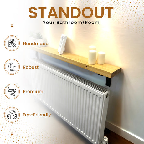 Oak Radiator Shelf | Solid Oak Slim Wall Shelf for Hallway & Fireplace