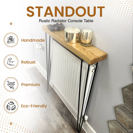 Radiator Shelf | Rustic Slim Narrow Shelf for Hallway | Console With Hairpin Legs