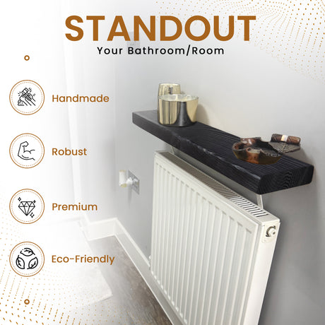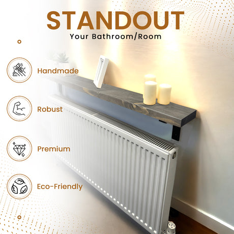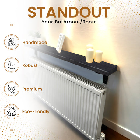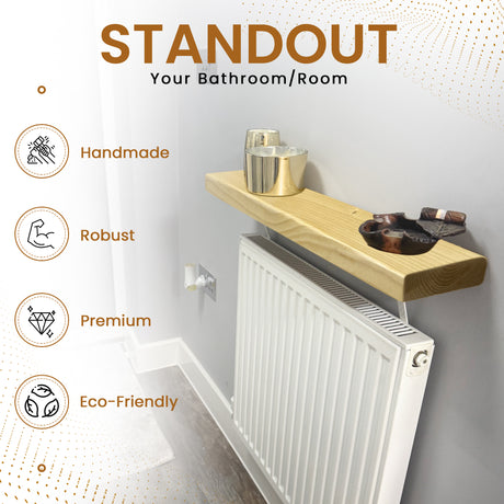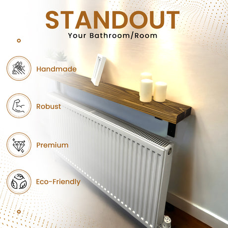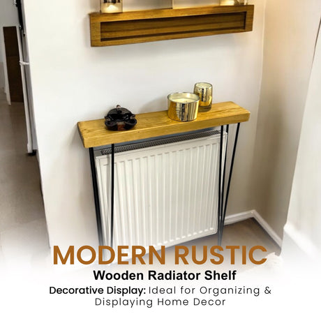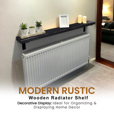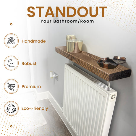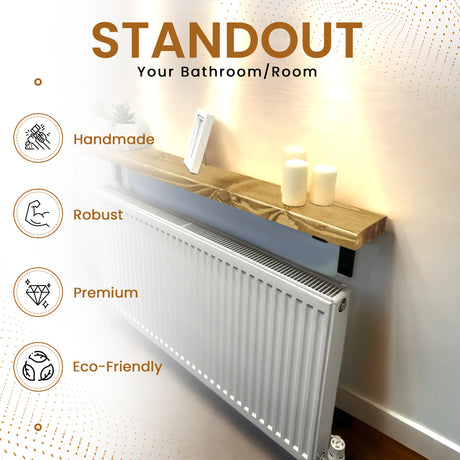 NO Drill Radiator Shelf | Rustic Slim Narrow Shelf for Hallway | Chunky Wood