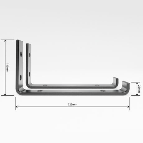 All shelves are supplied with a pair of two heavy duty UP style brackets along with all fixings. Brackets are unattached, so you can locate them wherever you wish. They are made to fit our shelves perfectly.