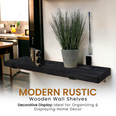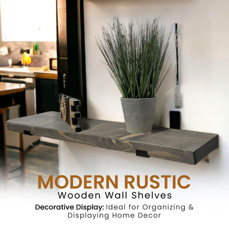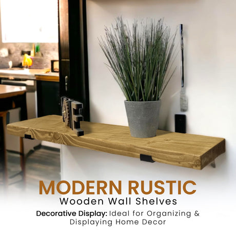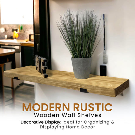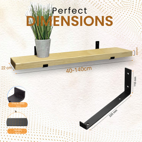 Set of 2 Rustic Shelves | Wall-Mounted Wooden Board With Lipped UP Brackets, 22cm Depth