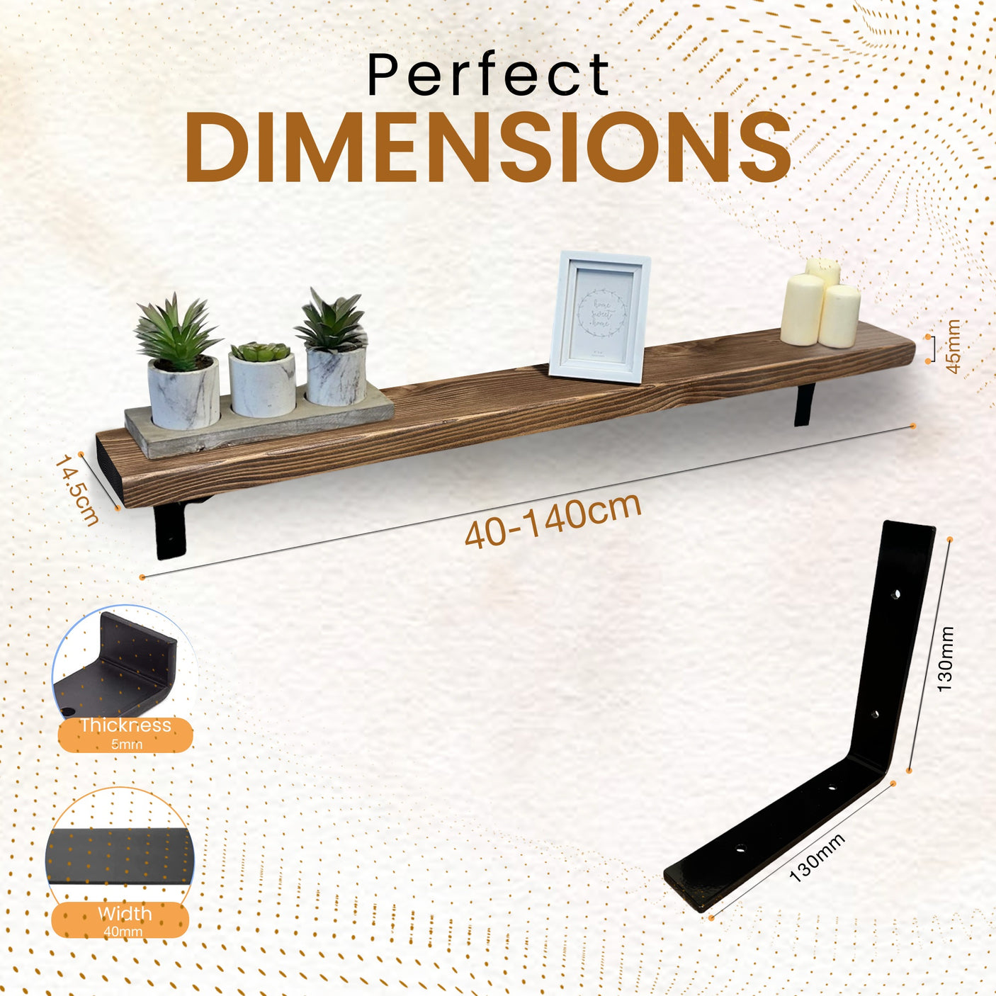 - Sturdy Black L-Shaped Brackets – Supplied with durable black L-shaped brackets, designed for secure and stable wall mounting.